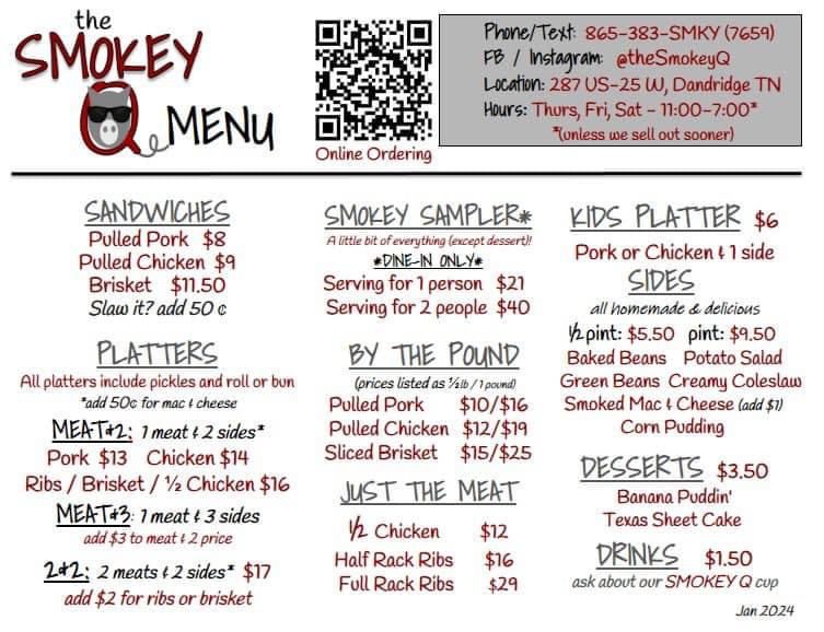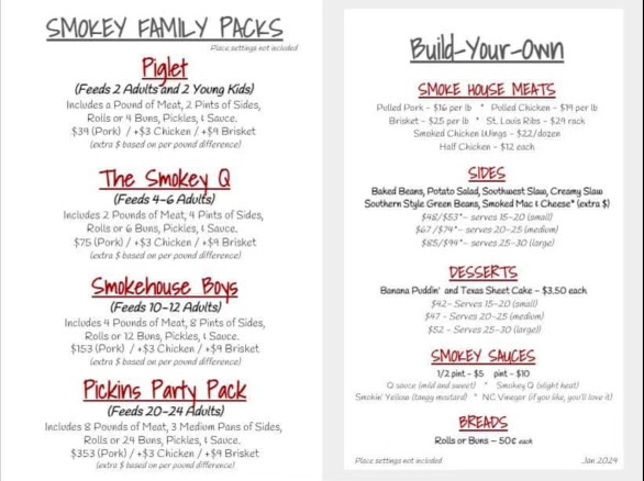The menu at The Smokey Q Company offers a delightful array of smoked BBQ dishes that will satisfy any craving for rich, flavorful meats. For those looking to sample a bit of everything, the Sampler Platter for One is a great choice, featuring a combination of smoked meats that showcases the restaurant's mastery in BBQ. If you're a fan of wings, the Smoked Wings are a must-try, boasting a perfect balance of smoky flavor and crispy skin.